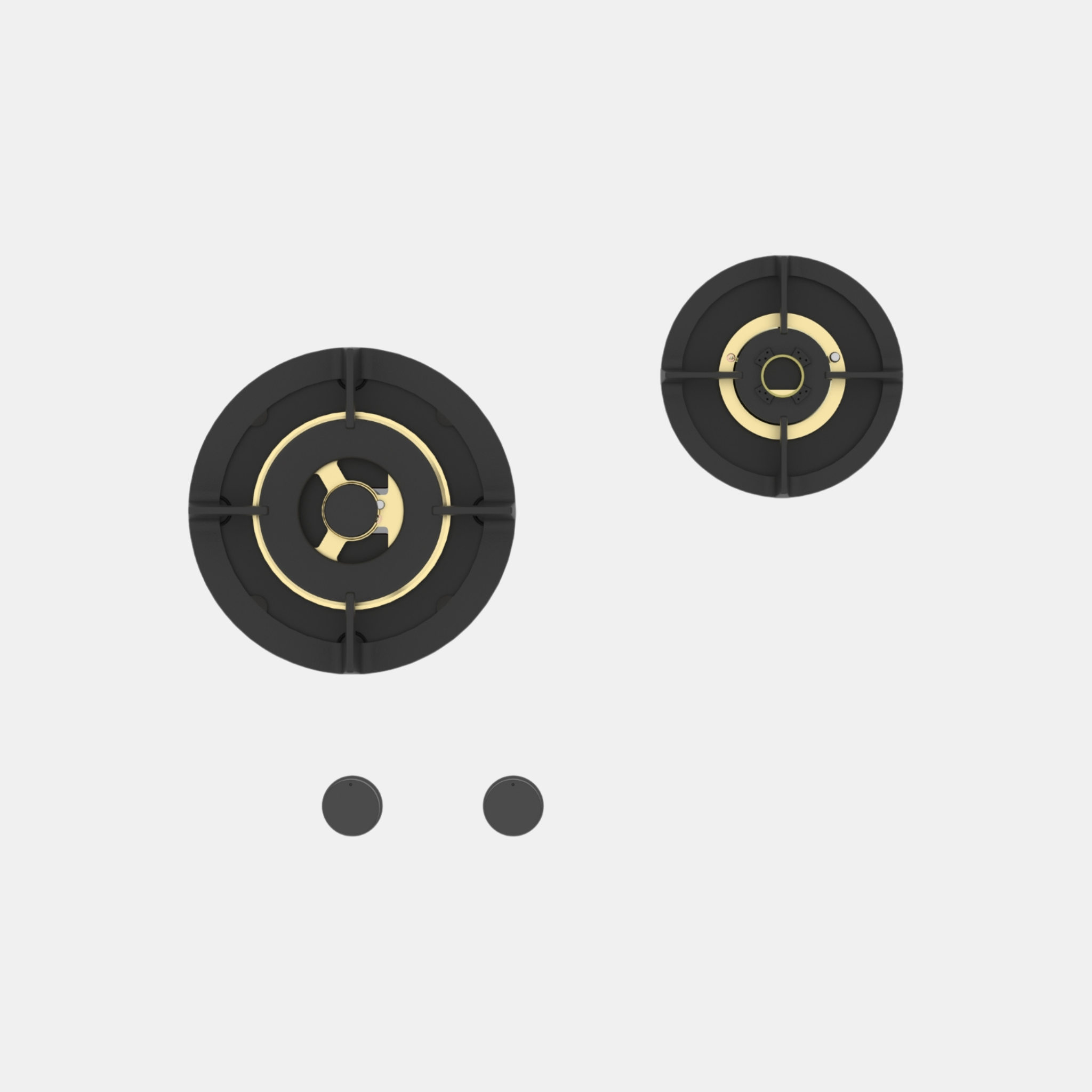 Durchdachte Größen: Ø 180 mm Medium- und Ø 240 mm Wok-Brenner – optimiert für Töpfe, Pfannen und Woks, gleichmäßige Hitze ohne Hotspots.
